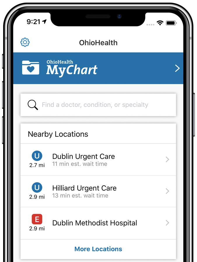 When you need care quickly, we’re always close by. Use the app to find OhioHealth locations, check urgent care wait times, get directions, phone numbers and hours, and even request an Uber ride.
